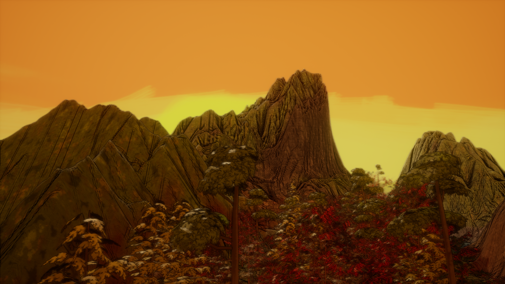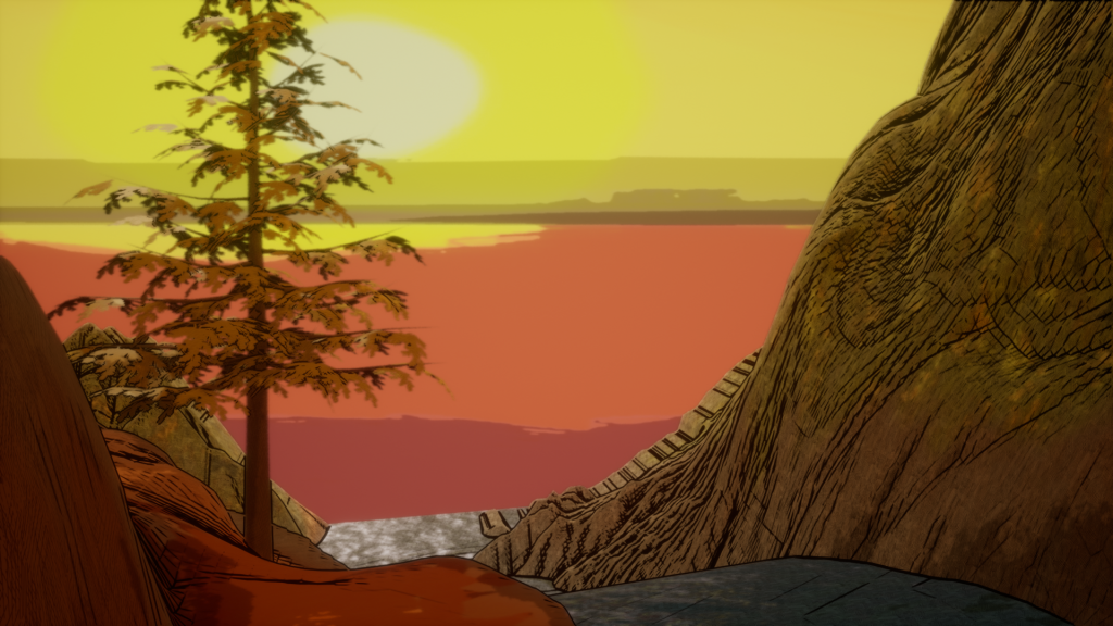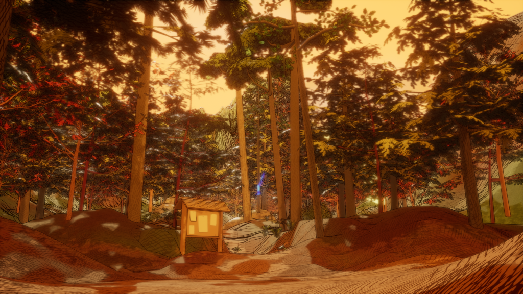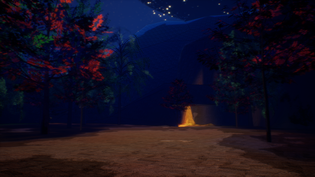 Lighting is a major part of the environments and storytelling for Spiral Peak. The first level starts during sunset. I made sure to incorporate a lot of warm yellows and oranges. The warm lighting encourages the player to feel safe and nostalgic as they begin exploring.