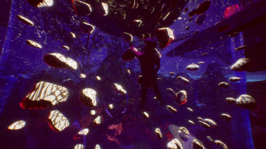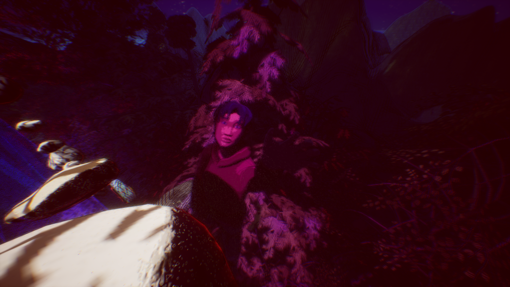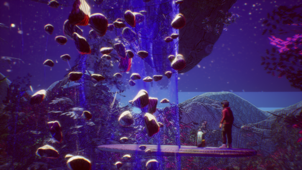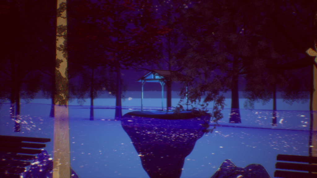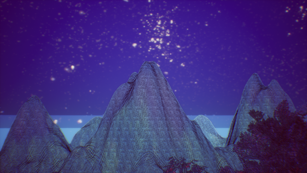 For level 3, I worked on sculpting the main terrain and the floating ground, rock walls, and the floating platform models, as well as doing the textures for the floating earth sections. A lot of my main task for this level was art direction and working out how to create an interesting and unique level that follows the narrative quickly and efficiently as we were cutting it very close to the deadline and did not have the resources to expend to create a whole new level with a ton of new models and textures. We settled on a chaotic spiraling level that reuses a lot of existing models from previous levels, but in a way that shows that the world has become dreamlike and overtaken by the supernatural forces of the woods. Also to save individual textures we created a shader that reflects the night sky skybox for the level which adds to the dreamlike look.