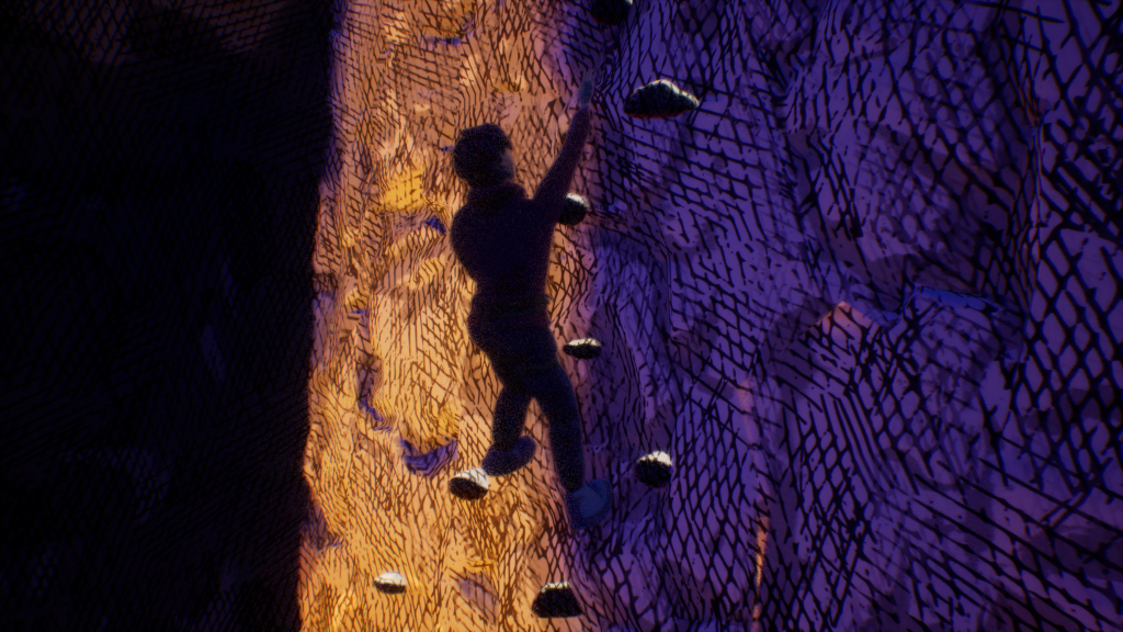 For level 1, I designed the terrain in Houdini and then sculpted in the main path in Unreal Engine. I created the tileable textures for the terrain in Substance Designer. I also worked on placing all of the models to fill the level and plotting out the wall hold placement for each wall.